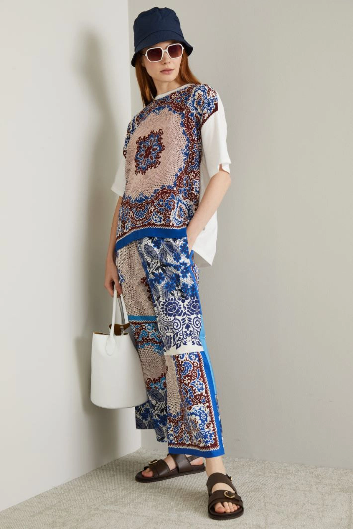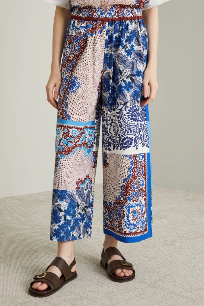 Straight, loose-fit trousers in printed pure cotton poplin, with drawstring waist and side pockets.