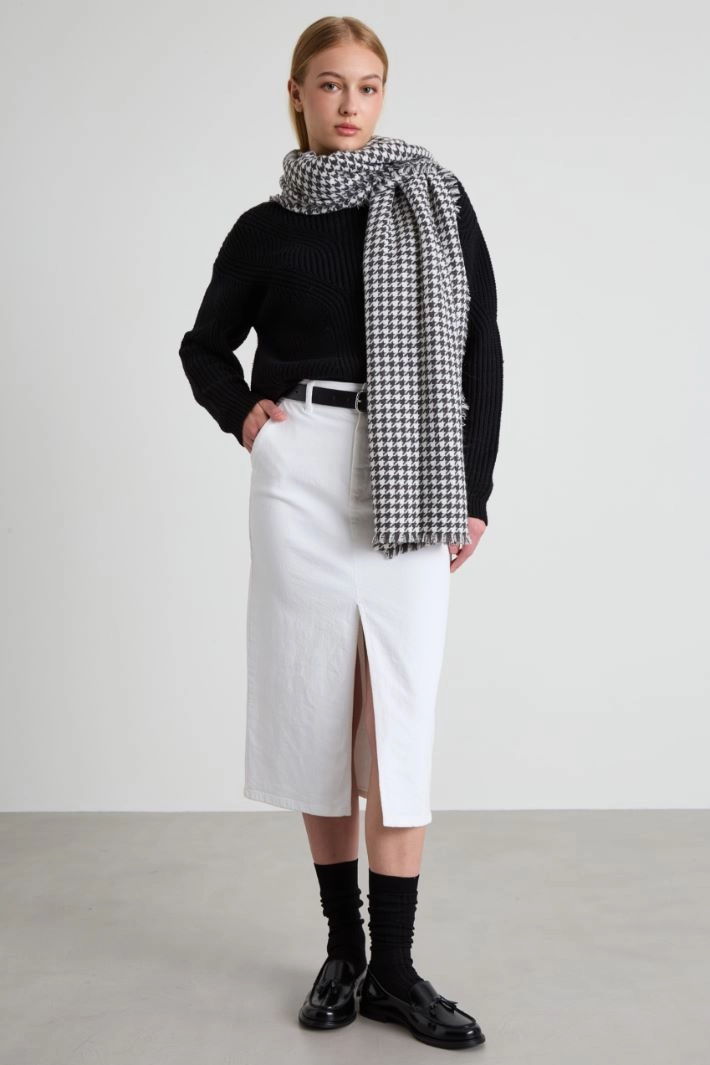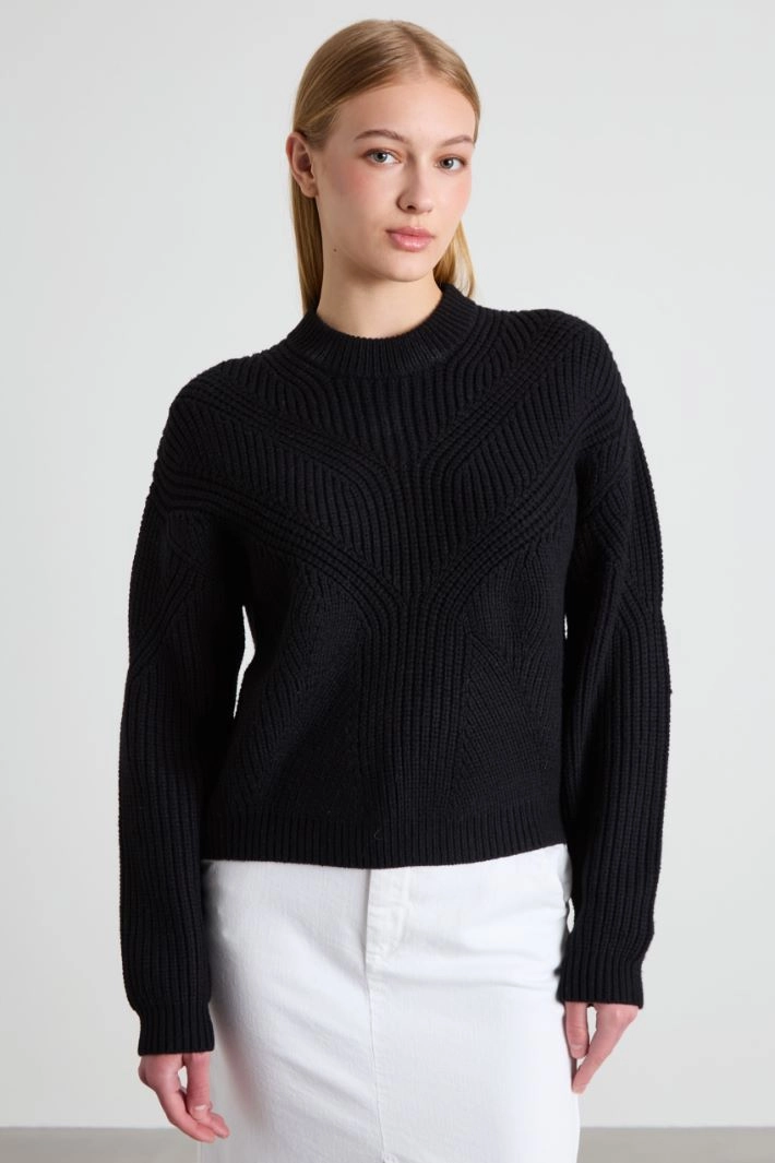Loose-fit sweater in viscose blend yarn, with ribbed knit, crew neck and long dropped sleeves.