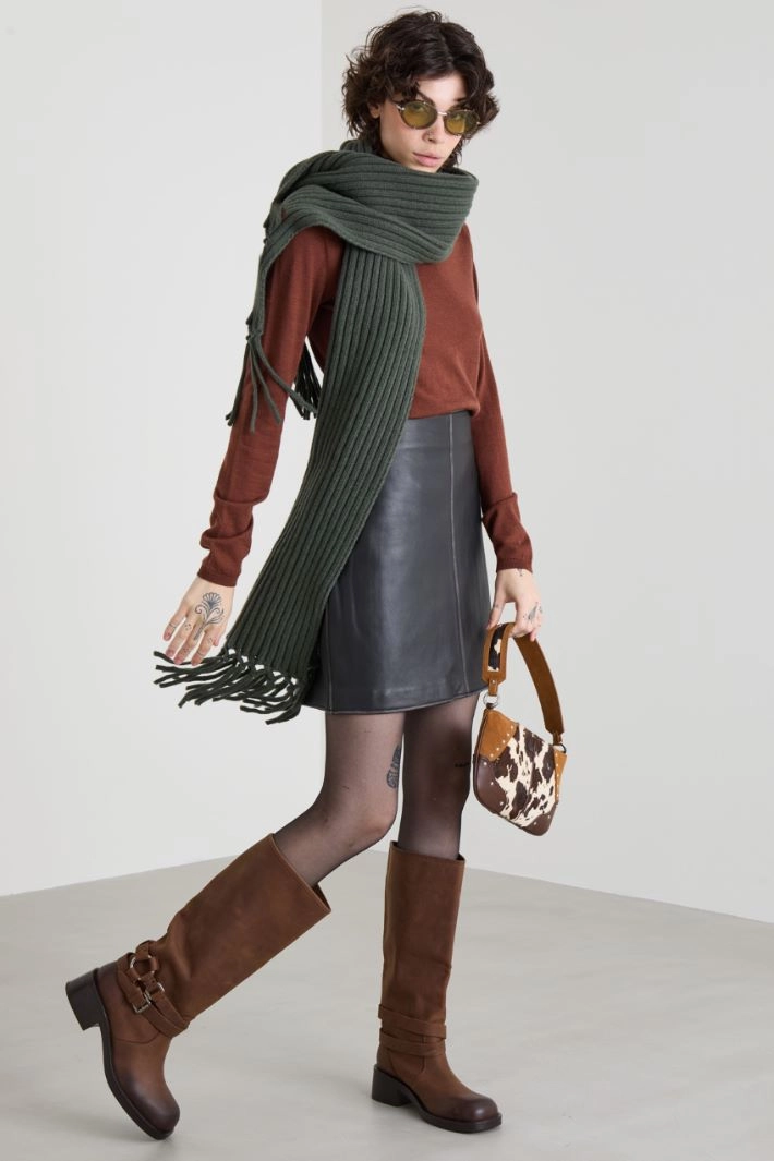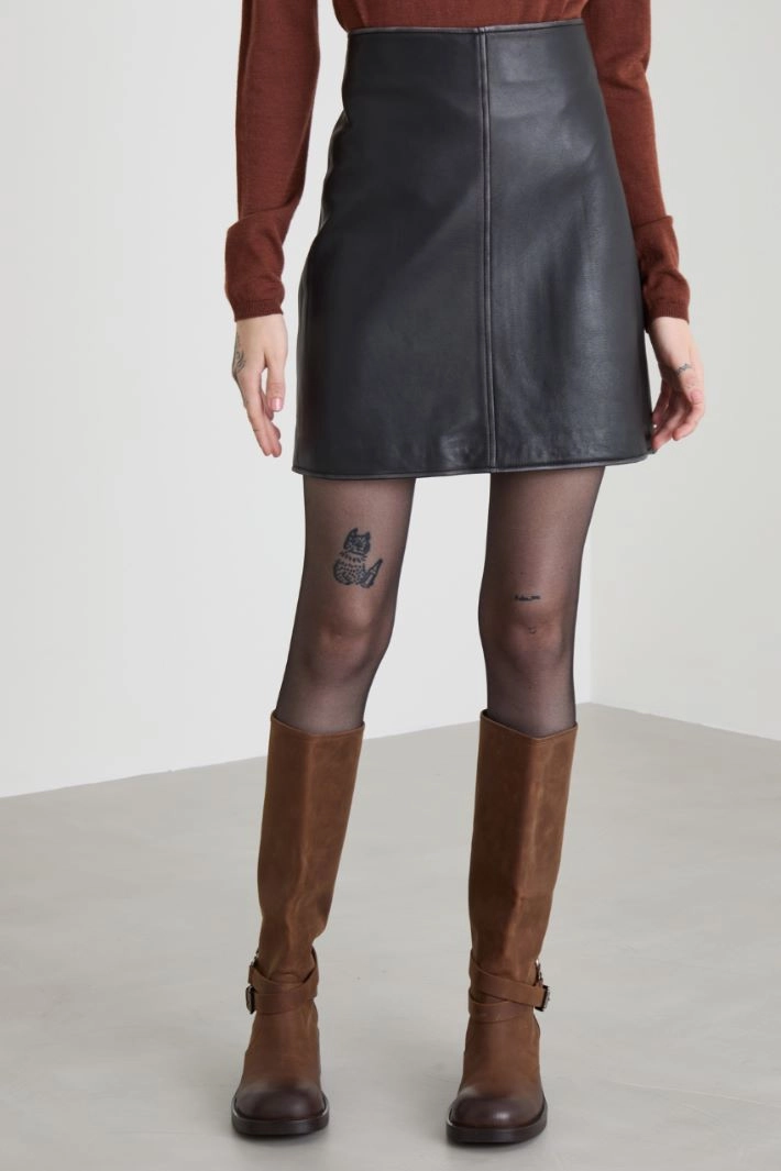 A-line mini skirt in genuine leather with an aged effect. Side zip fastening. Lined.