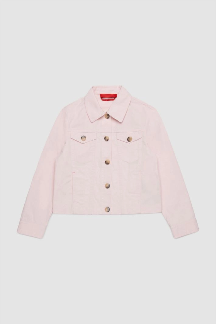 Straight-fit trucker jacket in cotton-blend drill, detailed with a point collar, long sleeves, button-flap chest pockets and front welt pockets. Button fastening.