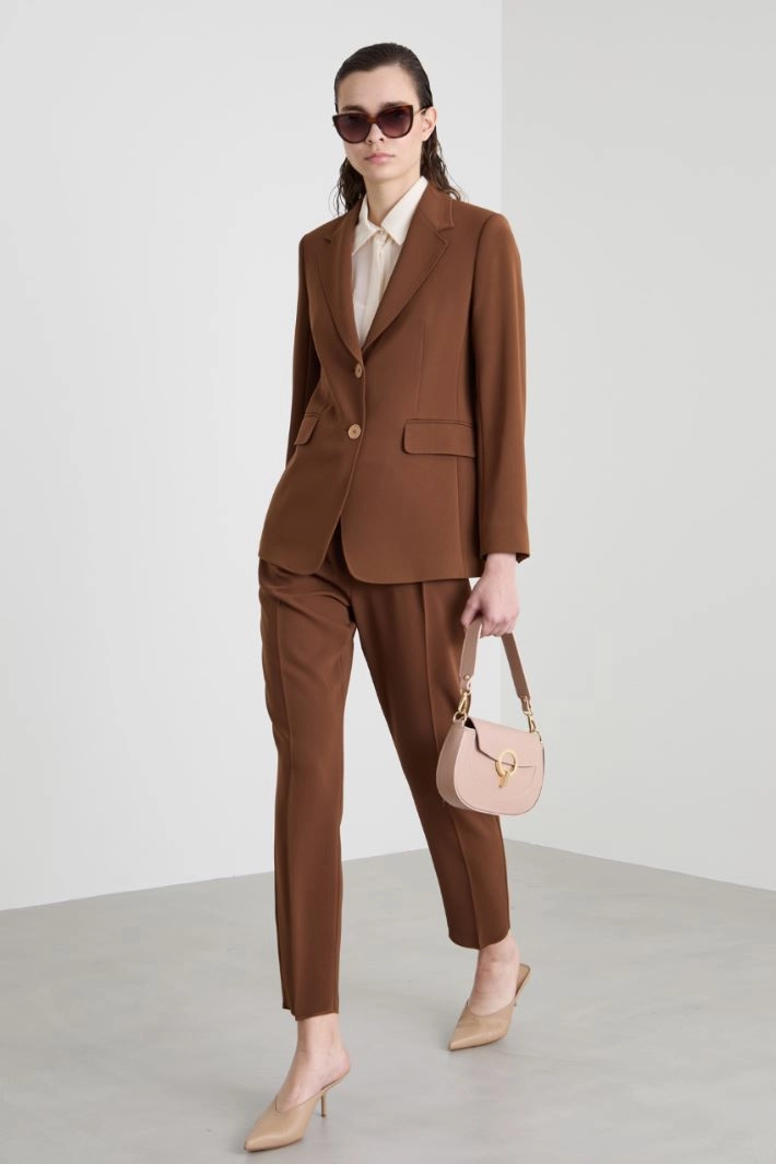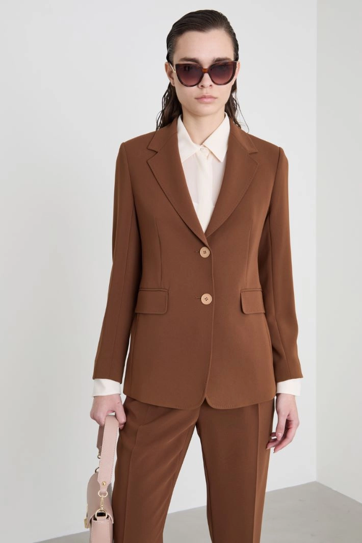 Slightly fitted cady blazer with topstitching, lapel collar, long sleeves with buttons at the bottom, and double-welt side pockets with flaps. Single-breasted button fastening. Lined.