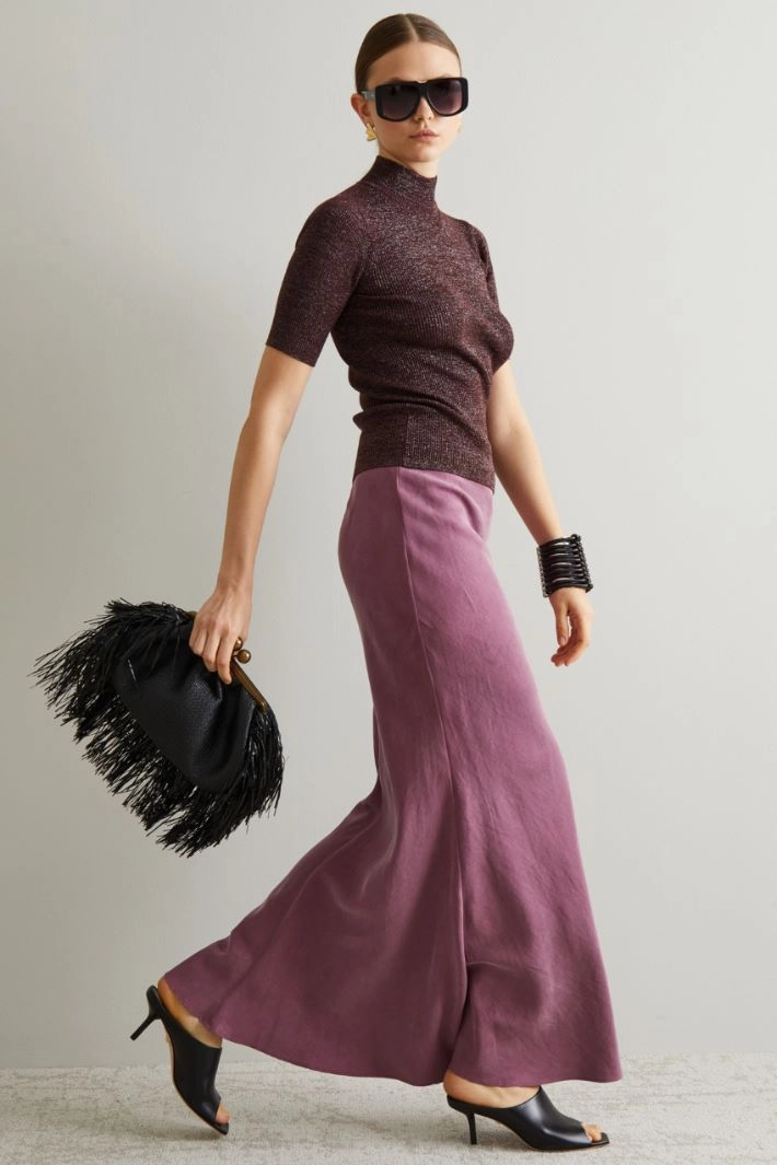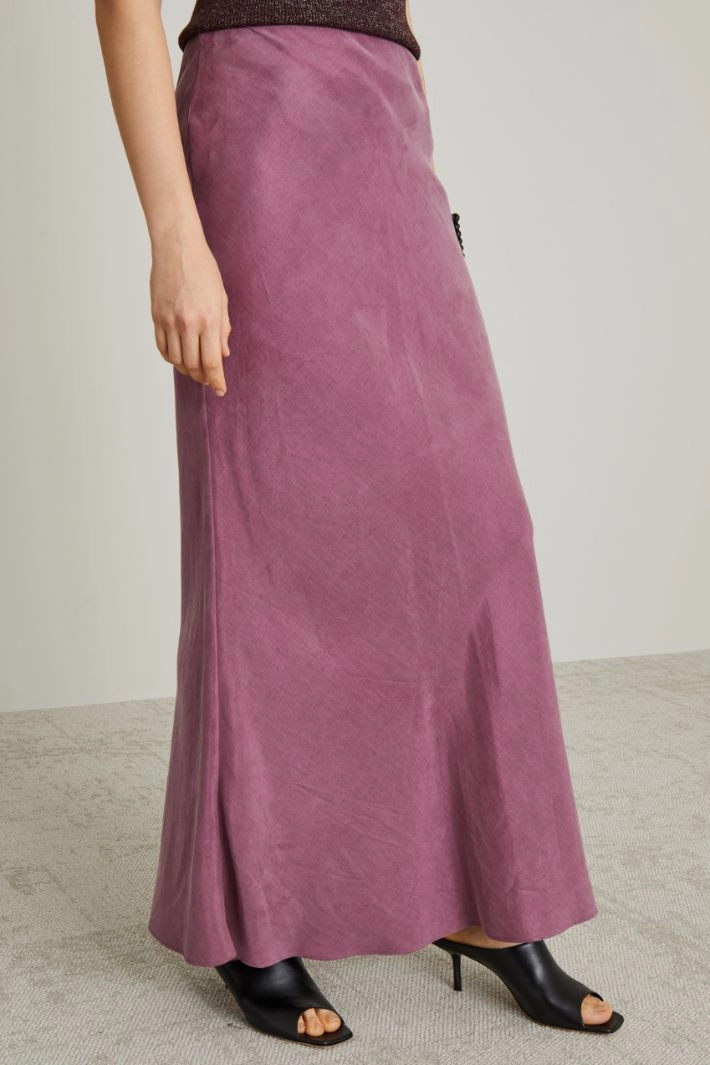 Hourglass-shaped skirt in natural fibre fabric, linen and cotton with a washed effect, with invisible zip fastening and hook on the back.