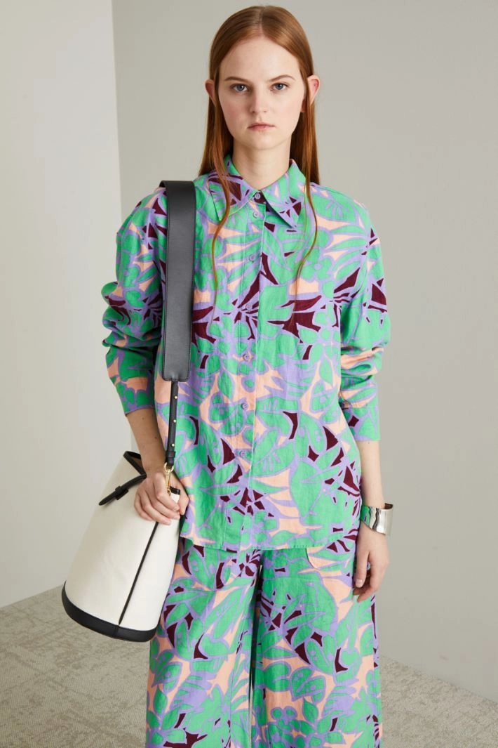 Oversized linen shirt with classic collar and long sleeves. Button fastening. Asymmetrical length.