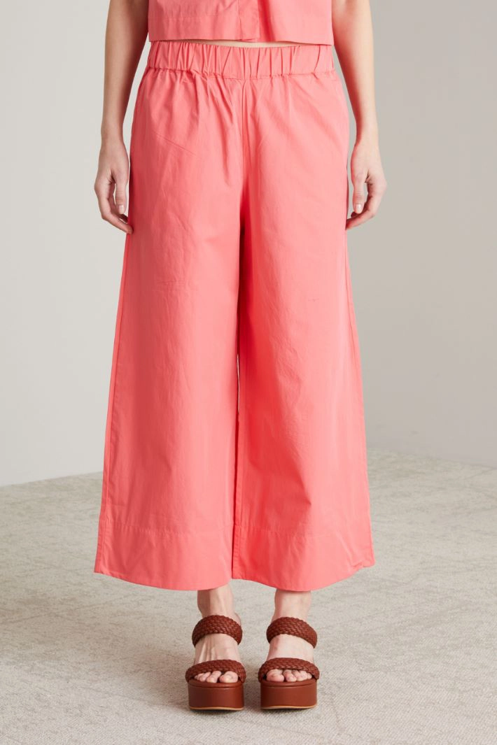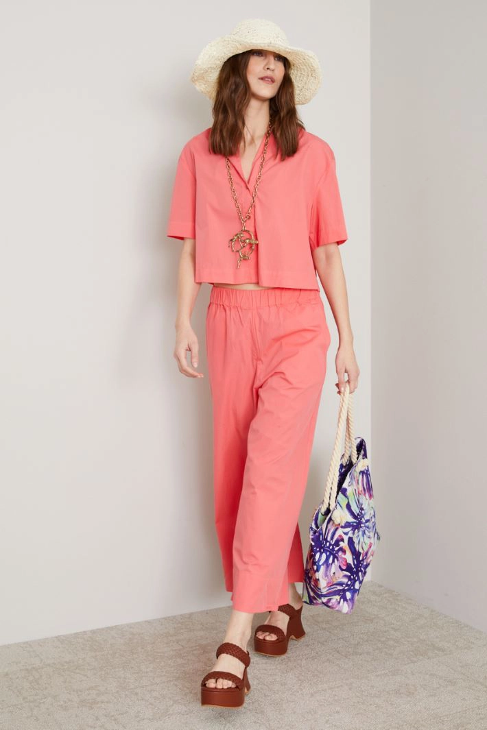 Flared and loose trousers in printed pure cotton poplin, with an elasticated waist and French pockets on the sides.