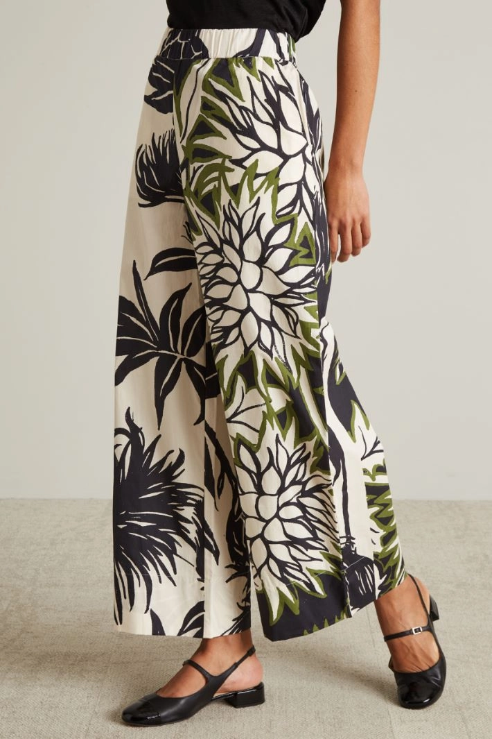Cotton poplin palazzo trousers with elastic waistband and French pockets.