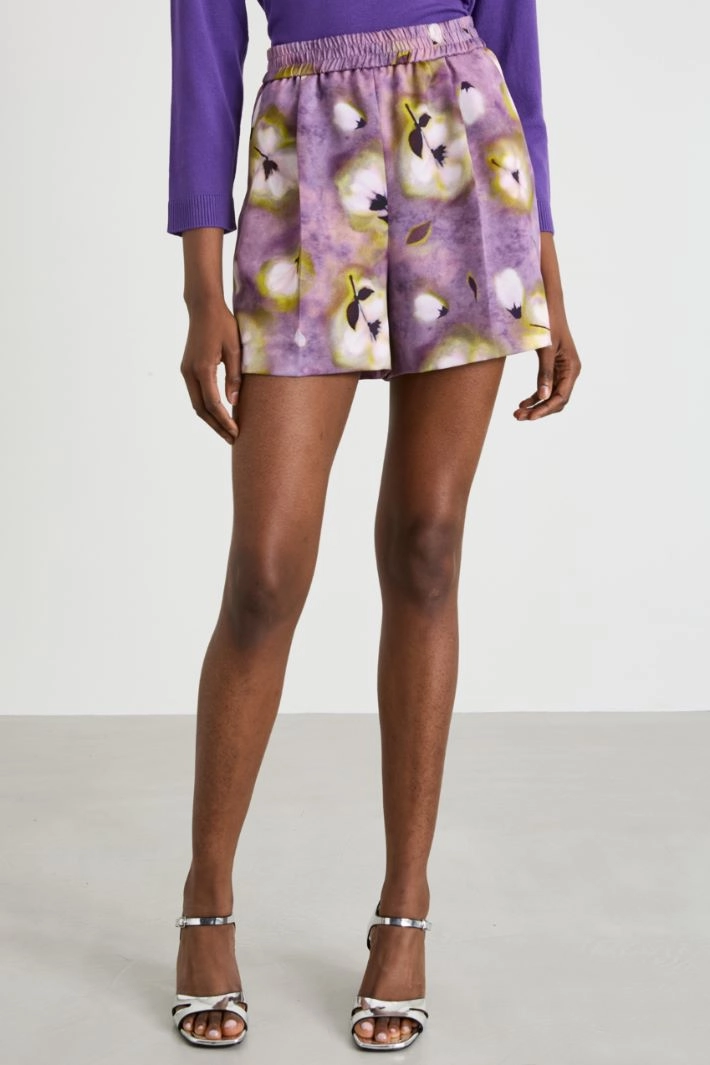 Regular-fit envers satin shorts with a shiny finish, elasticated waistband, French pockets on the front and pressed crease along the length.