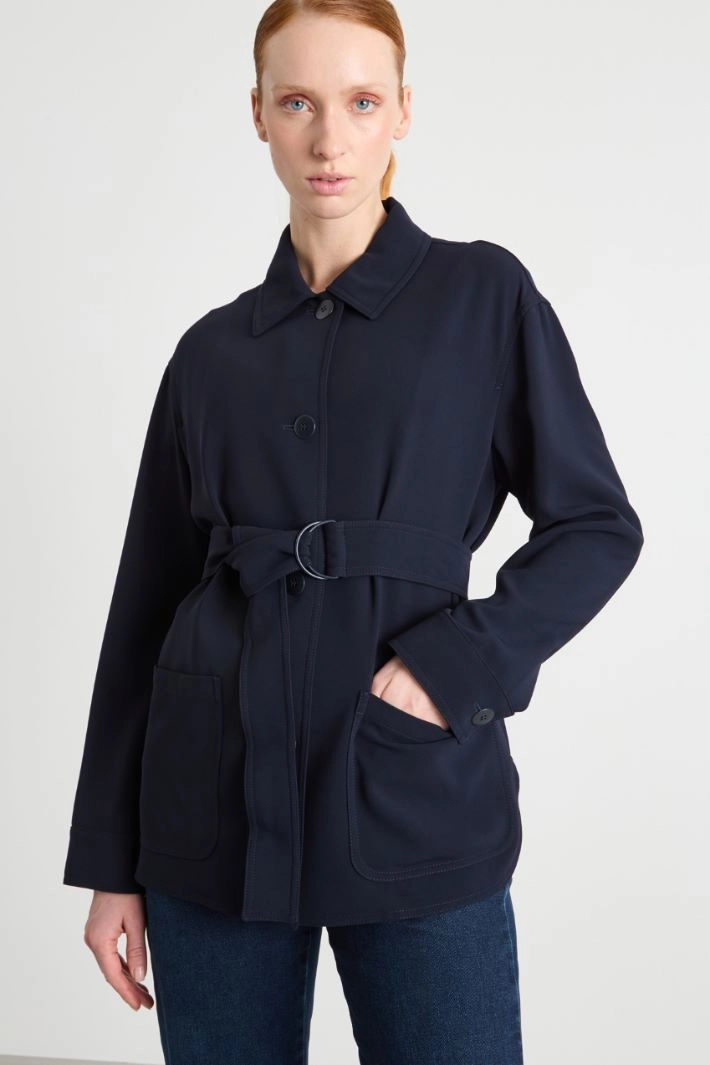 Crafted from crepe, this straight-cut tunic features a point collar, long sleeves and patch pockets. Finished with a button fastening and a matching belt.