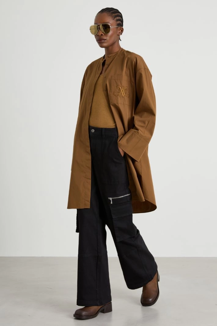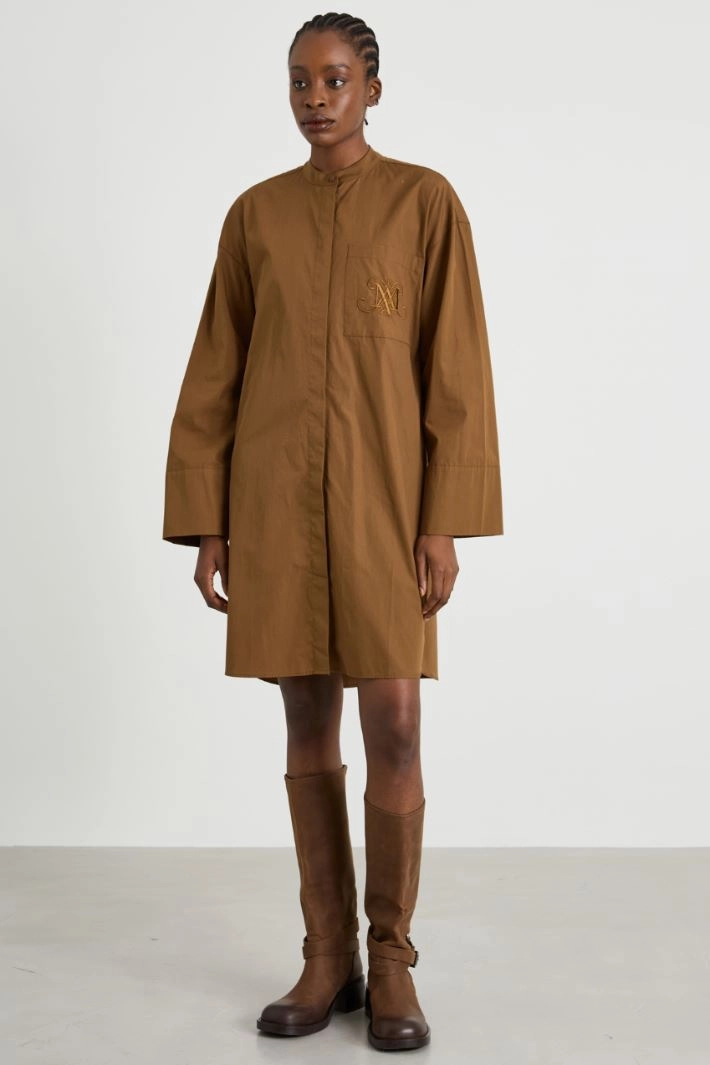 Straight-fit shirt dress in pure cotton poplin, with Mandarin collar, long sleeves with high cuff and slits, patch pockets and pockets inset in the side seams. Fastening with hidden buttons.