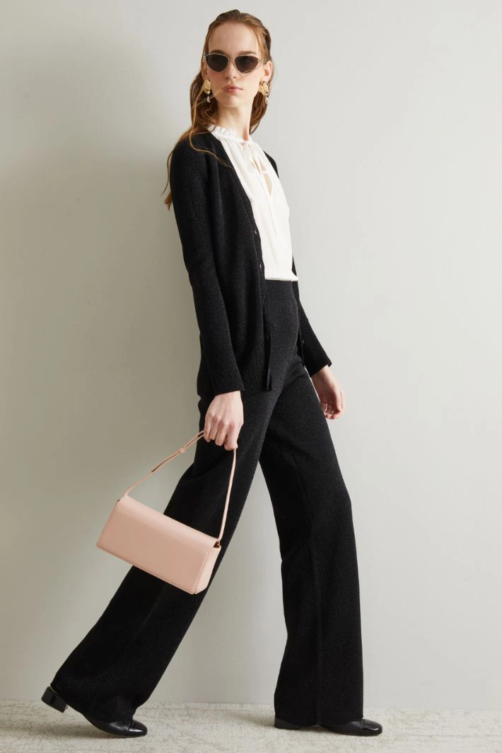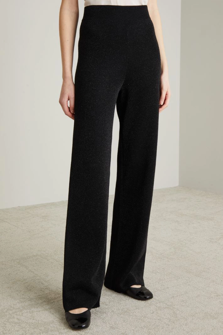 Lurex knit palazzo trousers with elastic waistband.
