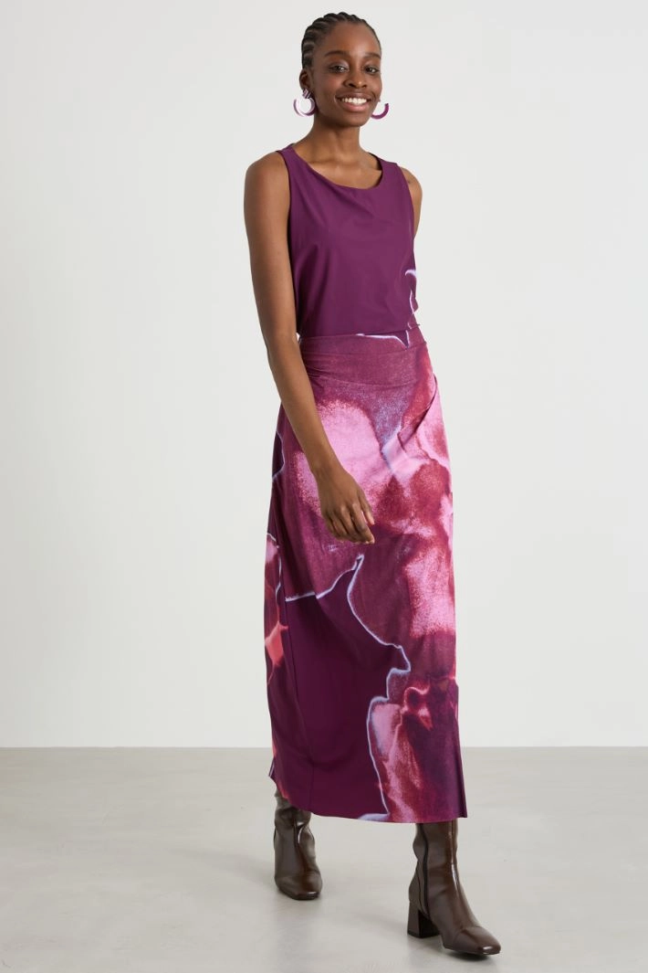 Loose-fit jersey dress with rounded neckline, side draped motif and crossover back.