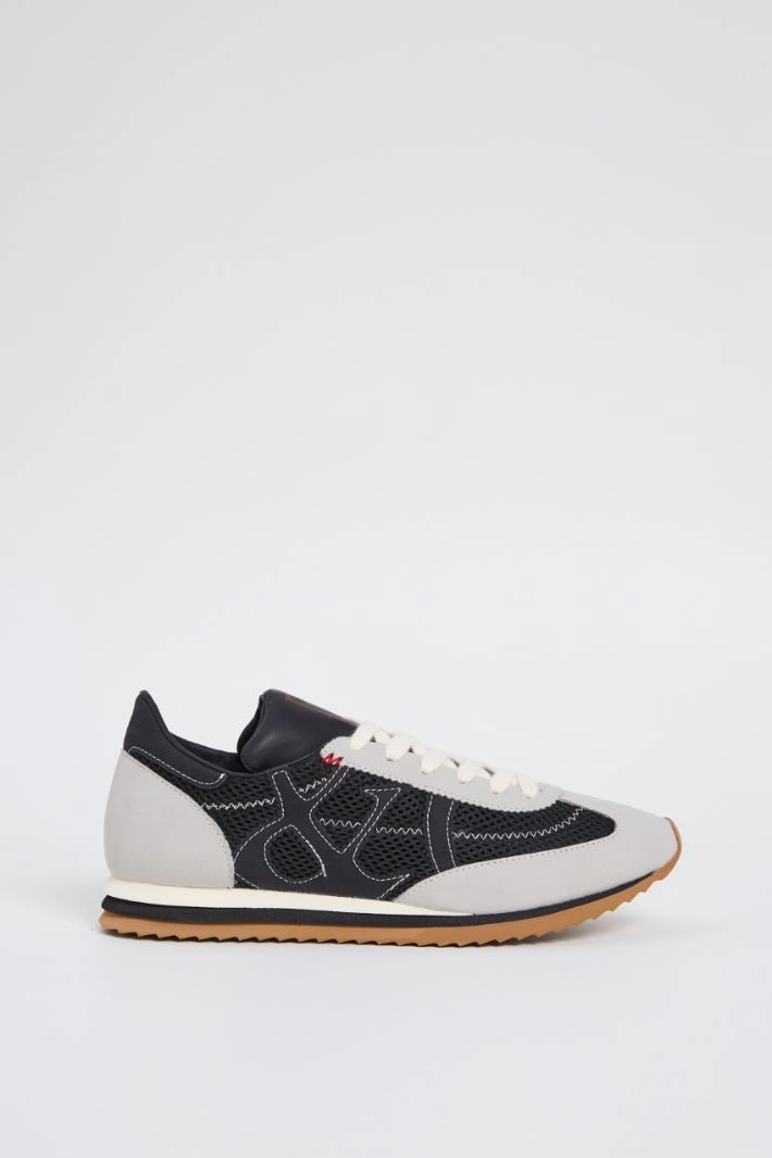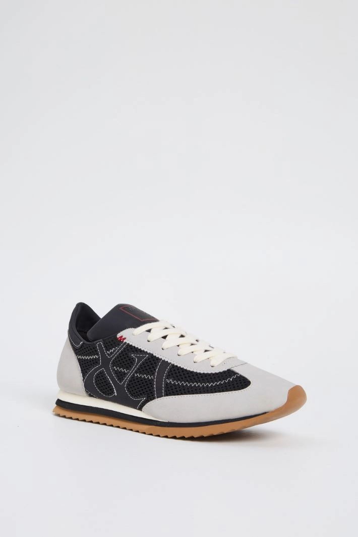 Mesh fabric sneakers, with contrasting faux leather inserts and lace-up fastening. Rubber sole.