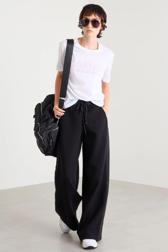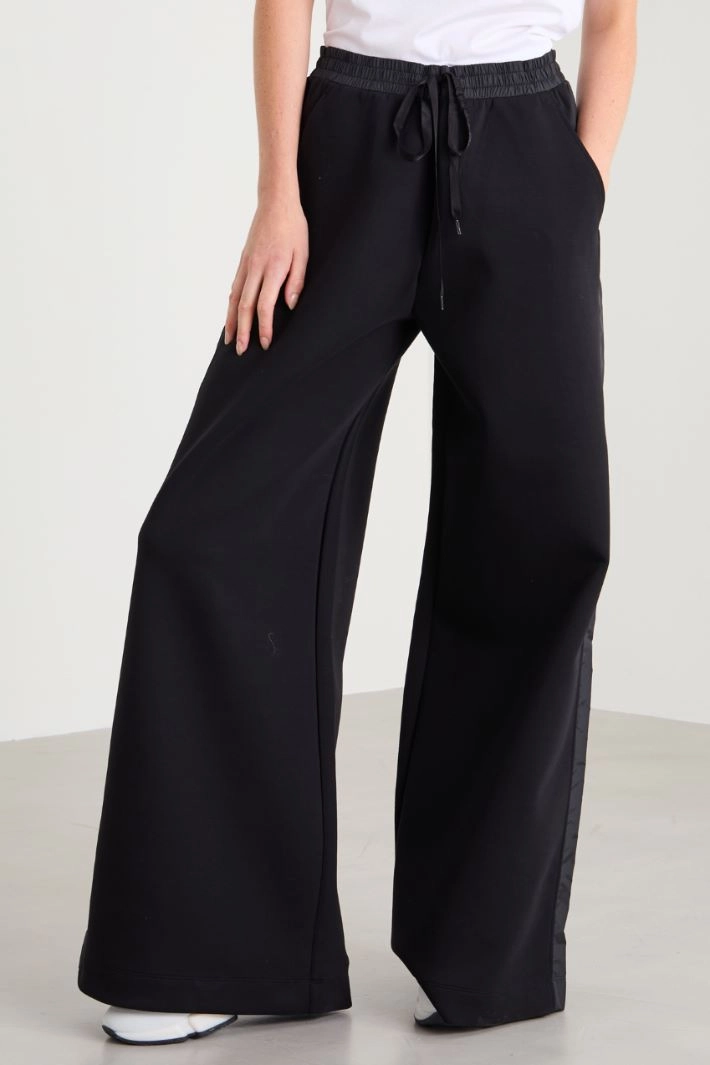 Flared joggers in compact jersey with technical fabric inserts, French pockets and elasticated waistband with drawstring.