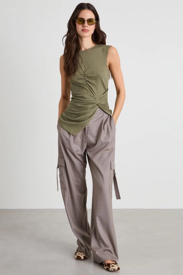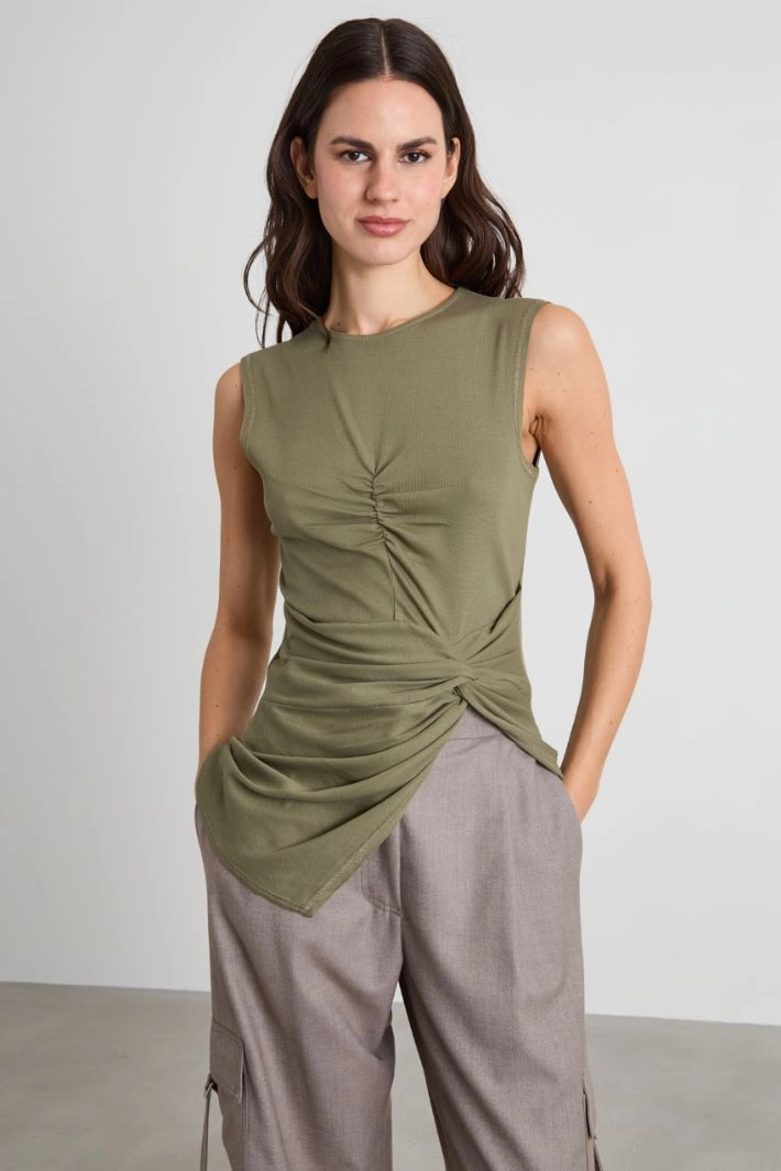 A fitted dress in stretch cotton jersey, featuring a crew neck and a gathered and draped motif on the front.