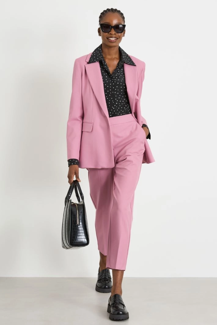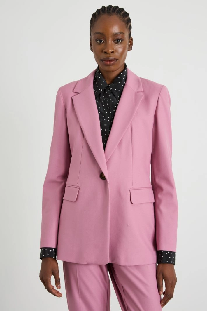 Fitted blazer in viscose blend batavia, with lapel collar, long sleeves and flap welt pockets. Button fastening. Lined.
