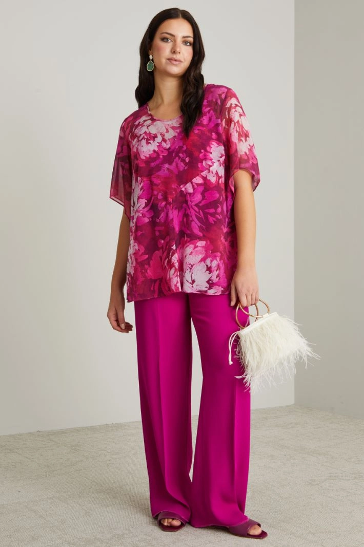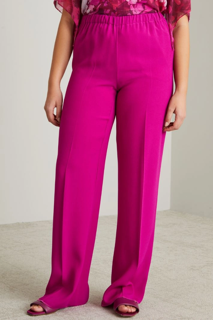 Palazzo trousers in envers satin, with elasticated insert at the waist and pressed crease along the length.