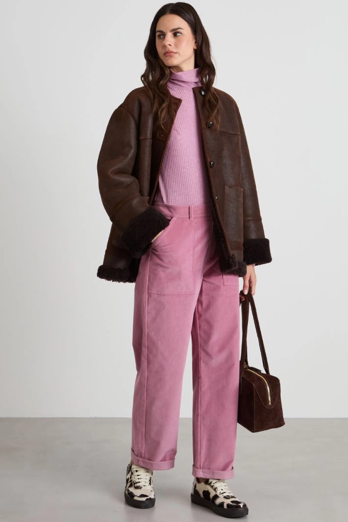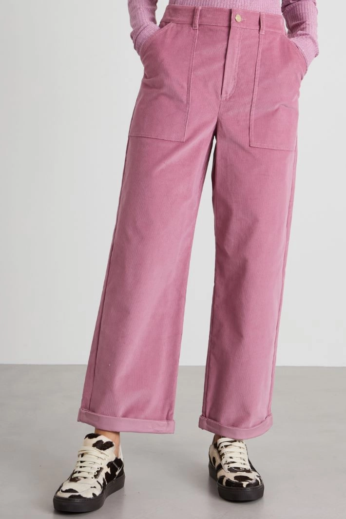 Straight-fit trousers in stretch cotton corduroy, with belt loops at the waist, side French pockets and welt pockets at the back, hidden zip fastening and metal button.