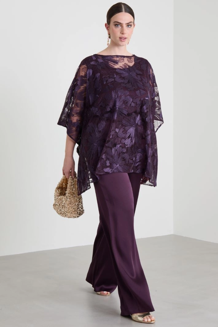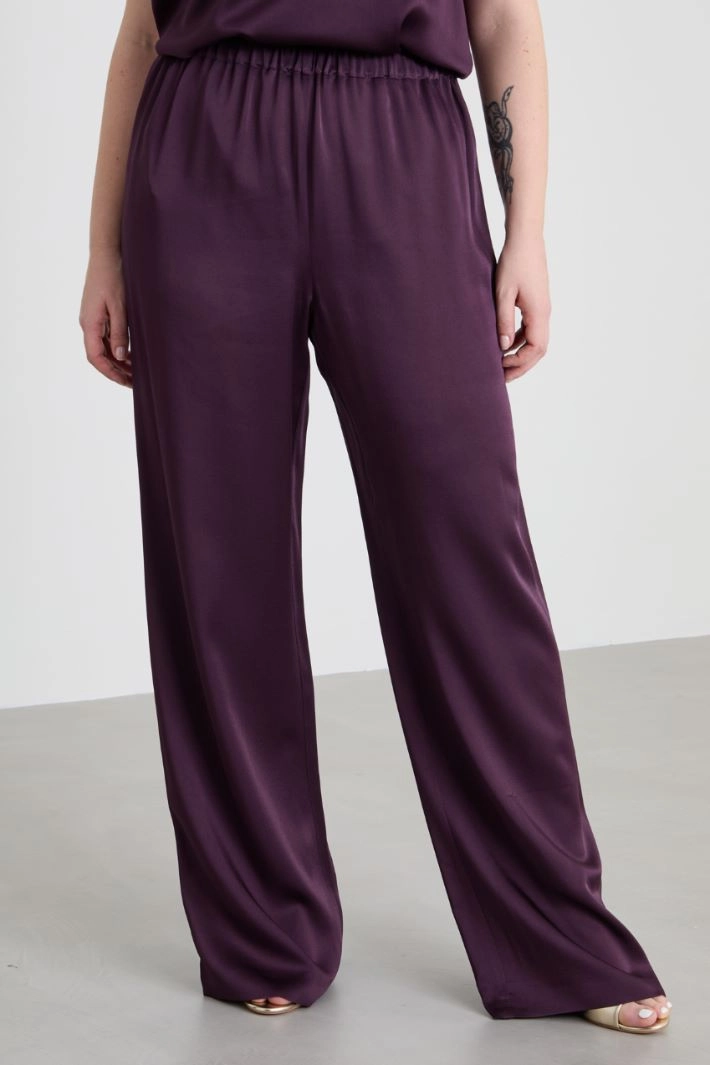 Palazzo trousers in viscose blend envers satin with a shiny finish, with elastic insert at the waist.