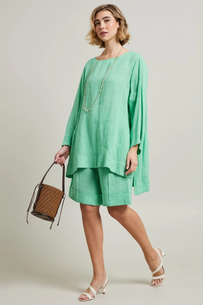 Straight-cut linen Bermuda shorts with a waistband and French pockets. Zip and button fastening.