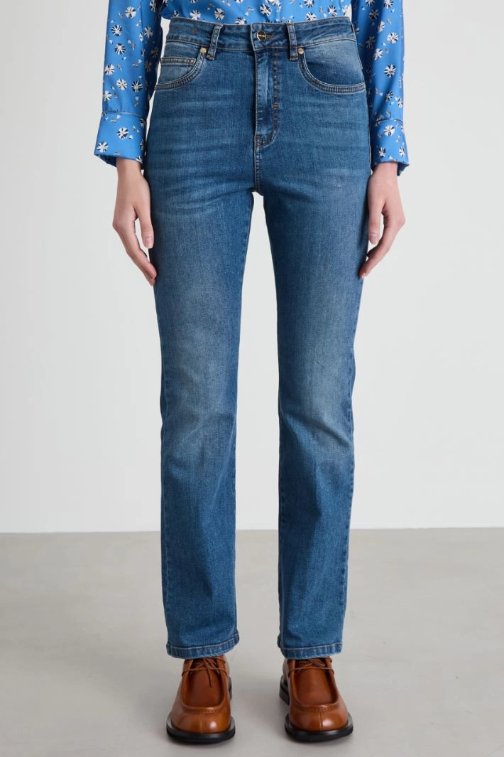 Straight-fit jeans in stretch cotton denim, with belt loops, five pockets and fastening with a hidden zip and metal button.