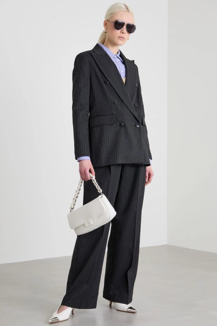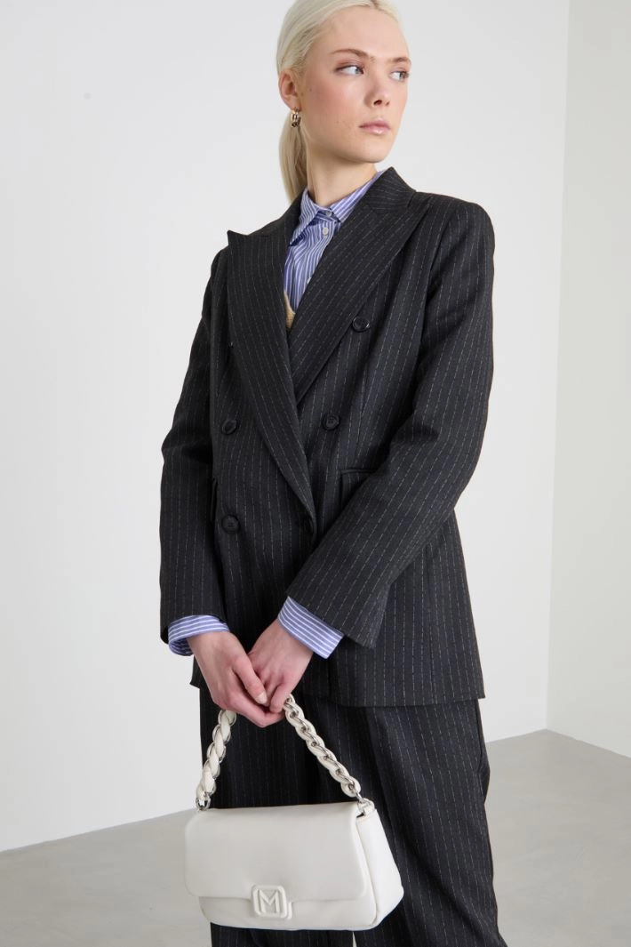 Straight-fit blazer in viscose-blend pinstriped gabardine, with peak lapels, long sleeves with vents, flap pockets and a central vent on the back. Double-breasted button fastening. Lined.