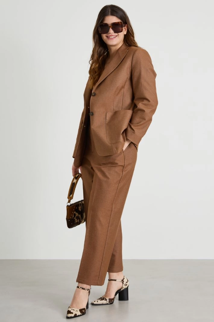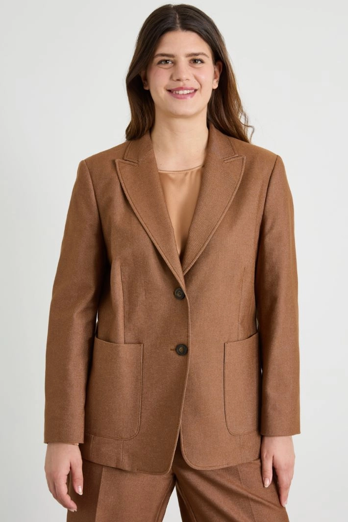 Straight-fit blazer in denim-effect stretch cotton fabric, with peak lapel collar, long sleeves, side patch pockets and single-breasted button fastening. Lined.