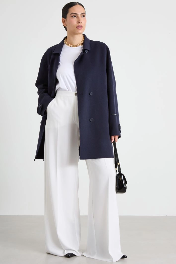Straight-fit coat in double-layer wool and cashmere blend, with a shirt collar, long sleeves with toggles, and welt pockets at the sides. Double-breasted button closure.