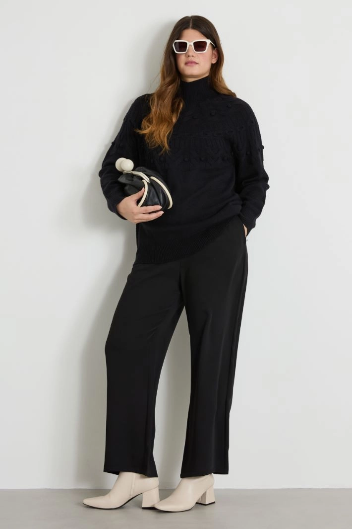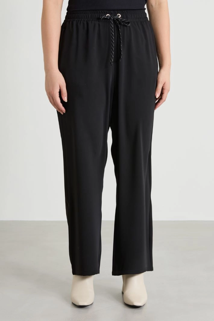Straight-fit trousers in flowing cady, with elastic insert and drawstring at the waist, and in-seam pockets with zip.