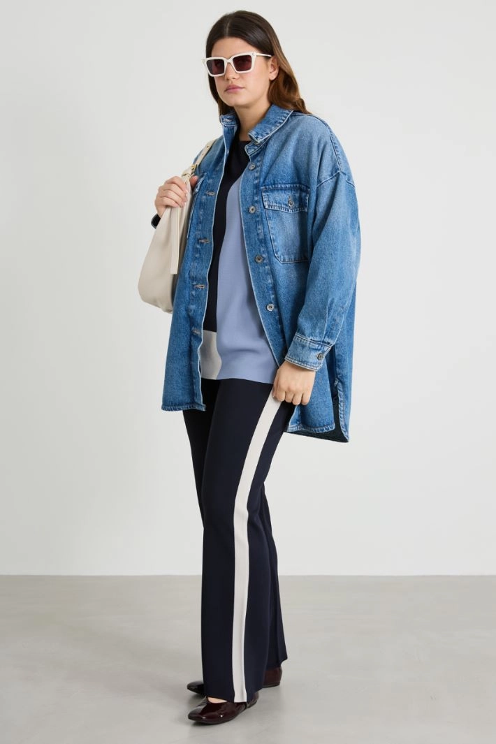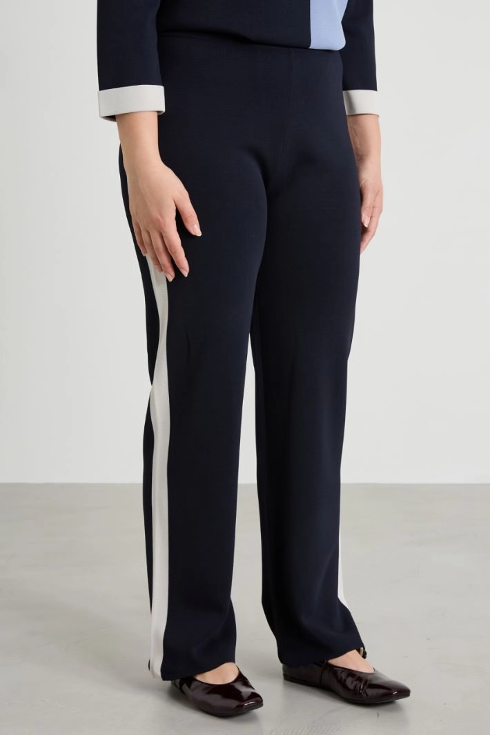 Straight-cut trousers in viscose blend crepe knit, with an elasticated waistband and contrasting side bands.