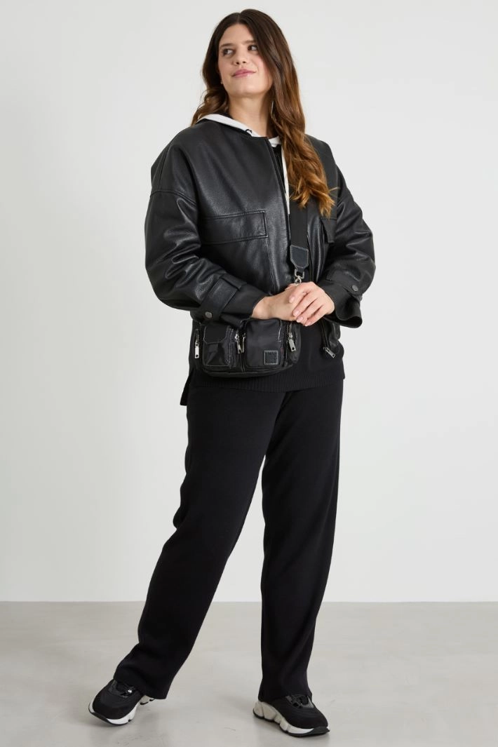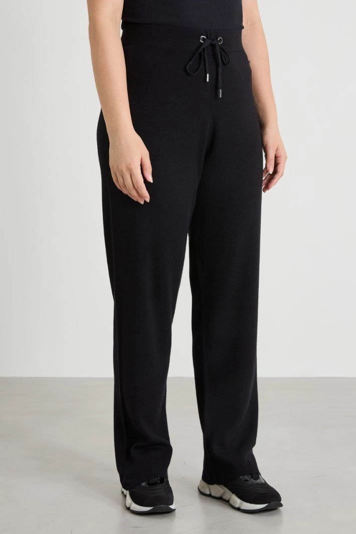 Straight-cut trousers in viscose blend yarn, with elastic insert and drawstring waist