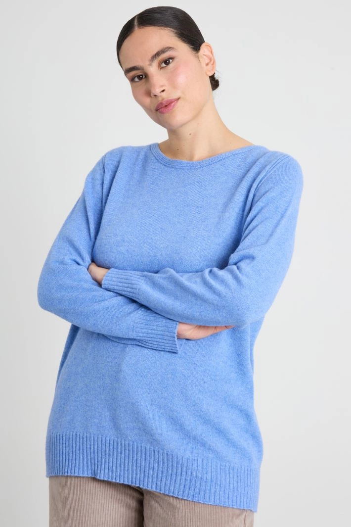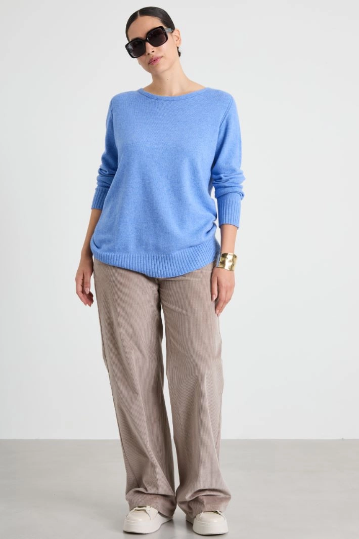 Regular-fit sweater in viscose and wool blend yarn, with a boat neckline, long sleeves and ribbed trim.