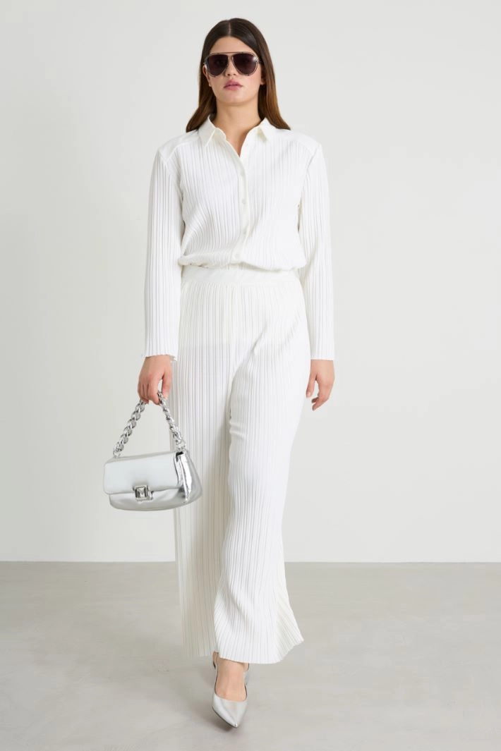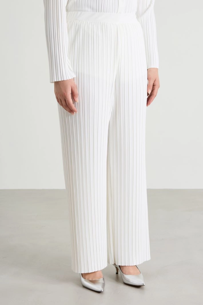 Flowing trousers in pleated crepe jersey, with elastic insert at the waist.