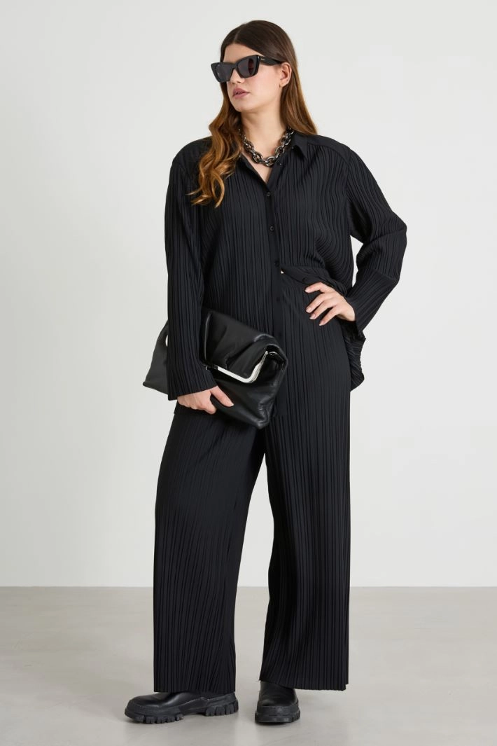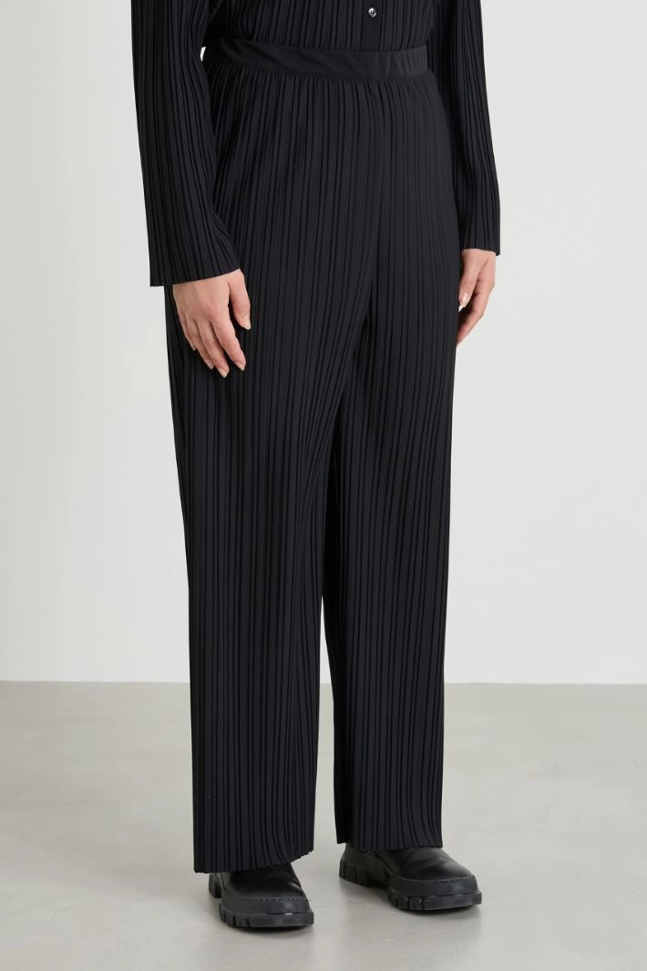 Flowing trousers in pleated crepe jersey, with elastic insert at the waist.