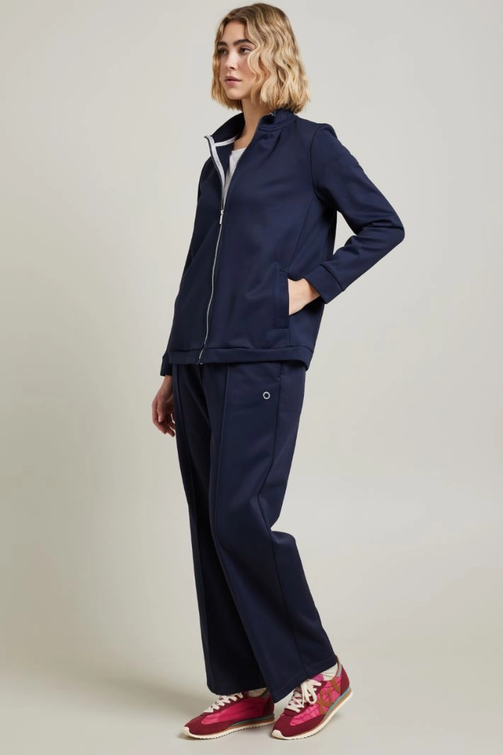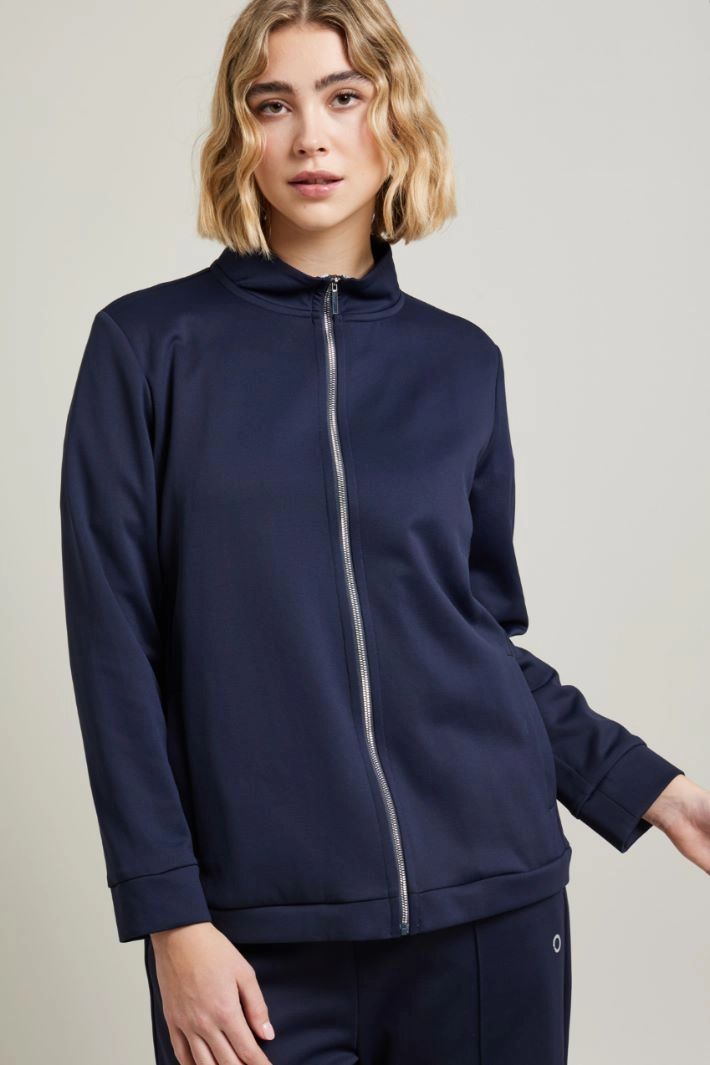Straight-cut hooded sweatshirt in cotton jersey with a high neck and long sleeves. Side pockets. Zip fastening.