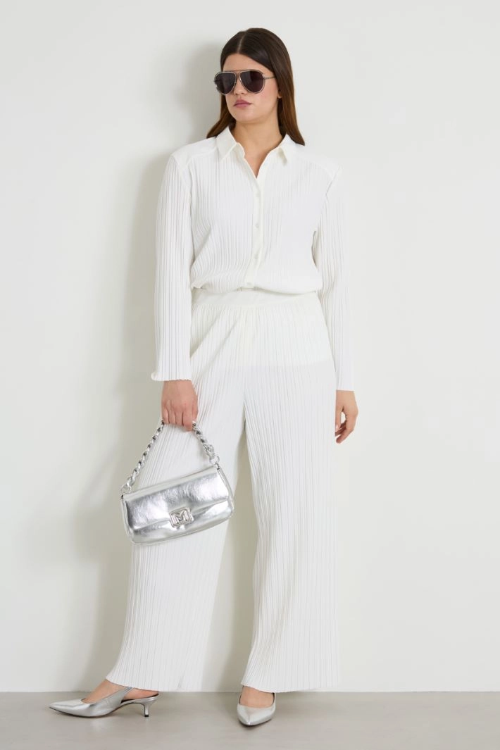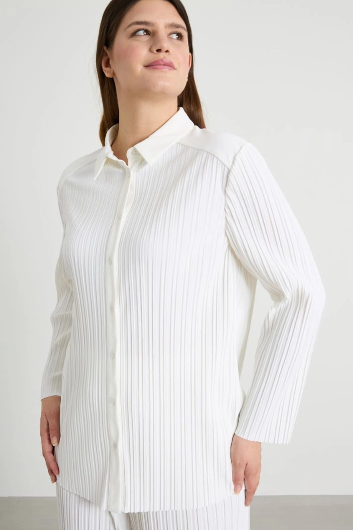 Straight-cut shirt in pleated jersey, with classic collar, long sleeves and button fastening.
