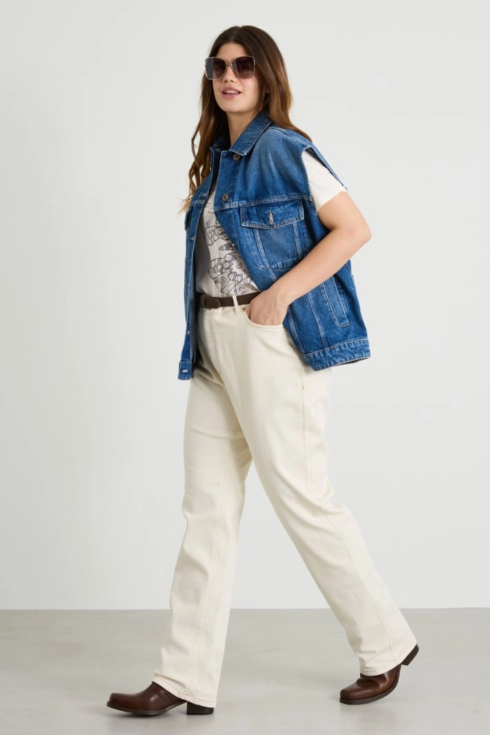 Straight-cut T-shirt in satin and stretch viscose jersey with print, crew neck and short sleeves.
