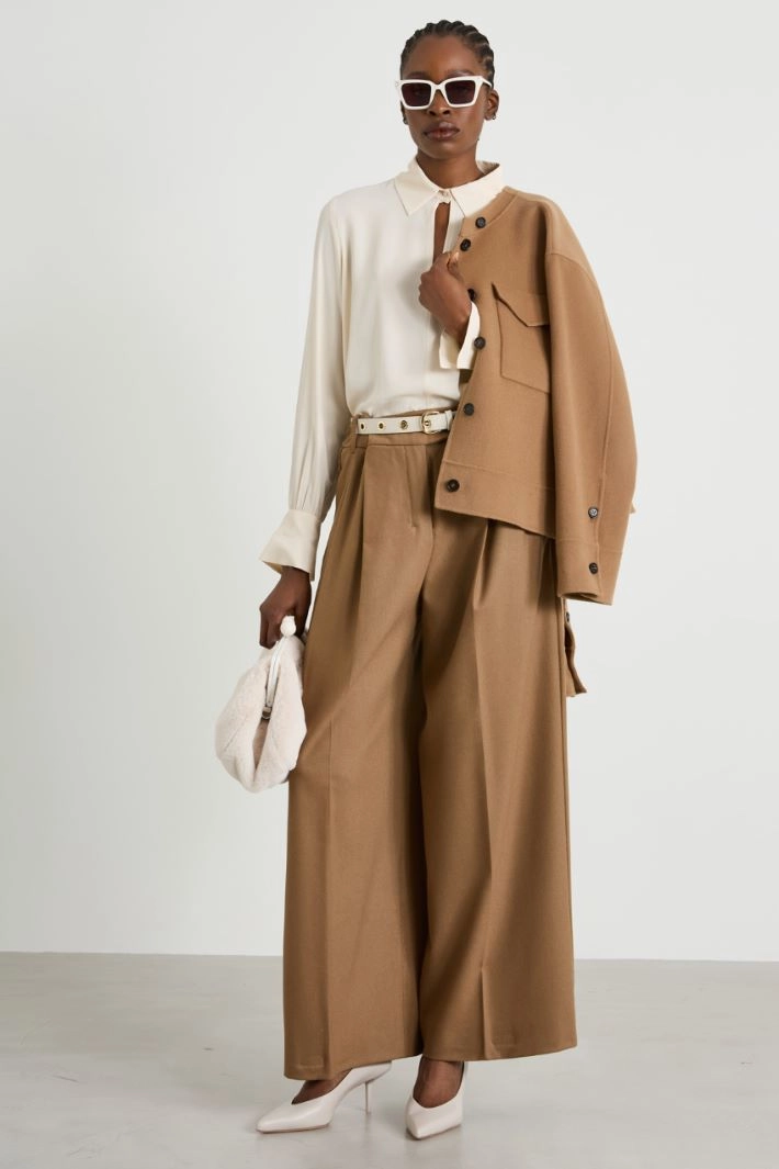 Flannel wide-leg trousers